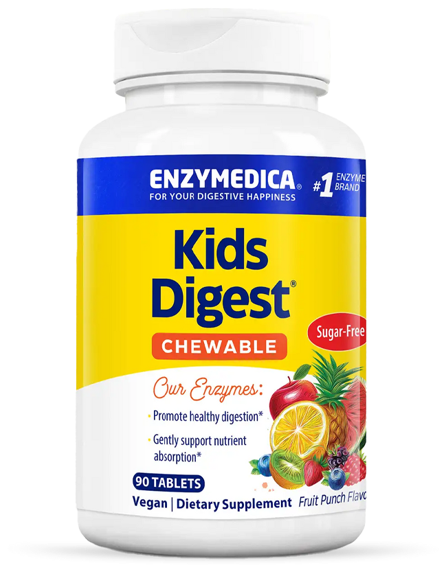 Kids Digest содержит пищеварительные ферменты, которые помогают организму расщеплять такие компоненты пищи, как жиры, клетчатку, белки и углеводы. Ферменты имеют решающее значение для усвоения питательных веществ, а также могут уменьшить газообразование, вздутие живота и несварение вследствие употребления нездоровой пищи.
