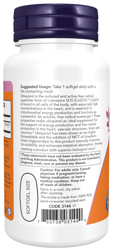 NOW Ubiquinol 200 mg, 60 капсул