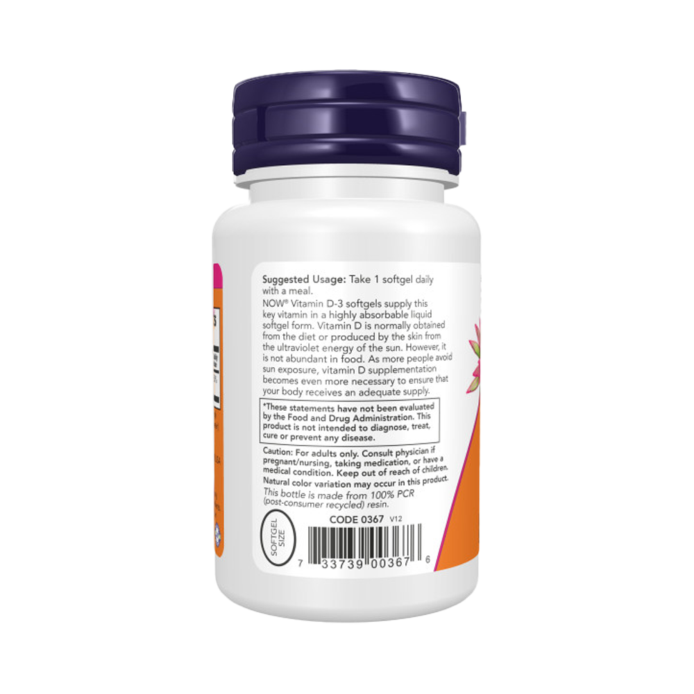 NOW Витамин D-3 2000 МЕ, 120 капсул