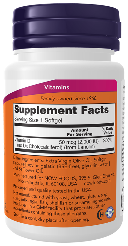 NOW Vitamin D-3 2000 IU, 120 капсул